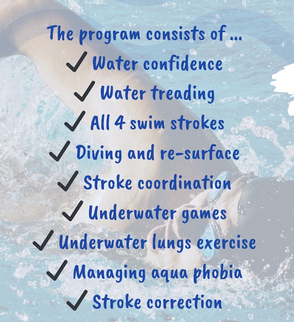 We accept children from age 2 onwards up to adults and we focus on private swimming lessons for efficient learning and would solely focus on you by tailoring lessons to suit your learning style.